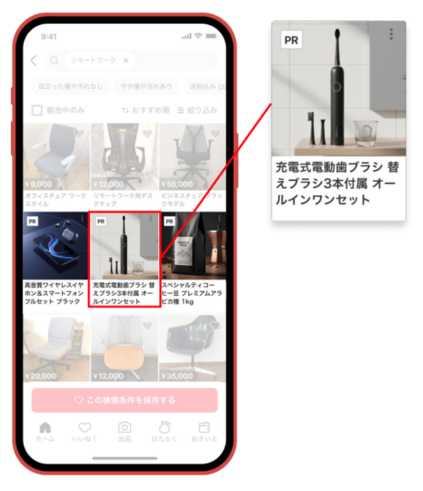 | 広告掲載面 | メルカリアプリ内検索結果画面・商品詳細 |